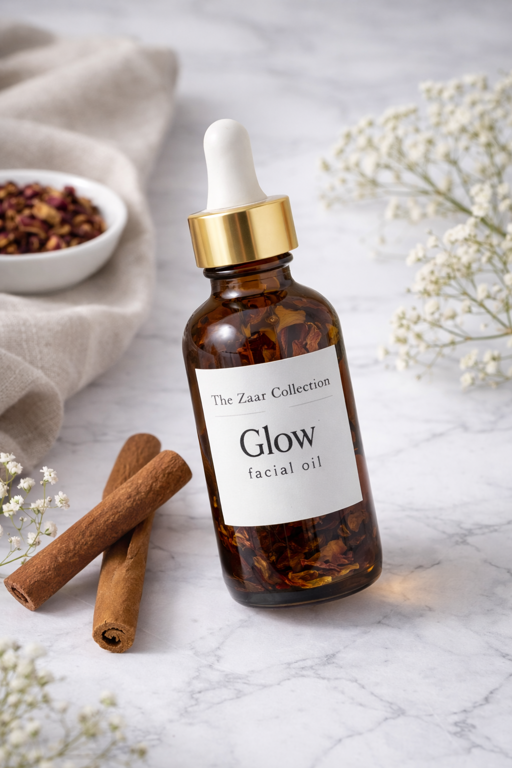 Reveal radiant, healthy-looking skin with our signature Glow Facial Oil from The Zaar Collection. This luxurious blend of carefully selected natural oils is designed to deeply nourish, restore, and illuminate your skin from within.
